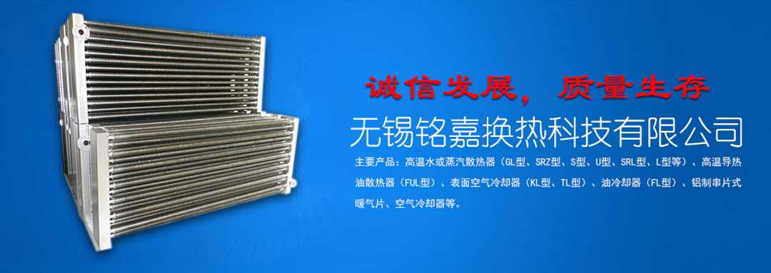 無錫銘嘉換熱科技有限公司是生產(chǎn)散熱器的專業(yè)工廠。 產(chǎn)品有:高溫水或蒸汽散熱器高溫導(dǎo)熱油散熱器表面空氣冷卻器油冷卻器鋁制串片式暖氣片空氣冷卻器翅片管換熱器